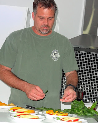 Dave's friends from work, Jeff and Debbie, came by to make a couple meals in Dave's Kitchen during my visit. One was a pasta dinner with other work colleagues. The other time they made a mango, tomato, basil salad that was delicious !!